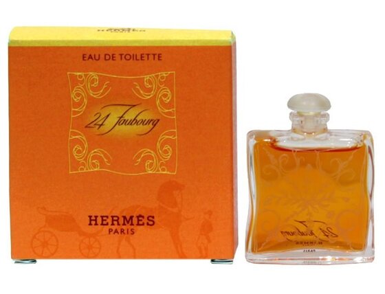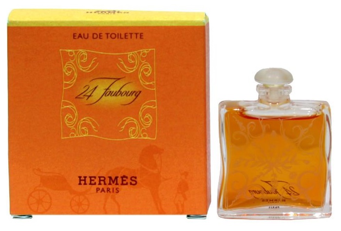 Ime dišave 24 Faubourg spominja na naslov glavne trgovine Hermes v Parizu. Steklenička dišave predstavlja svileni šal, ki ga raznaša veter. Dišava je prejela 18 nagrad na področju ustvarjanja parfumov. 24 Faubourg je cvetlična, lesna dišava jantarja. Zelo močno se čuti pomarančni cvet, ki skupaj s pomarančo in bergamotko daje vonju 24 Faubourg izrazit pomarančni okus. Diši po opojnem jasminu, začinjenem s sandalovino. Leta 1997 je ta parfum Hermes postal najboljša ženska dišava.