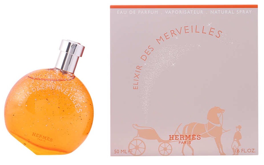 Hermes Elixir Des Merveilles je senzualni ženski miris namijenjen modernim, dinamičnim i strastvenim ženama. Simbolizira želju, snagu i odlučnost. No, istovremeno ukazuje na intuitivnu nutrinu i emocije žene. Ovaj ugodan miris će vas odmah osvojiti. Glava mirisa otvara se očaravajućim notama klementine, svježe i sočne pulpe naranče i nježne čokolade. Samo srce sastoji se od kombinacije zrna tonke, egzotične sandalovine i slatke vanilije koja je okupana nježnom kremom. U bazi dominiraju zanosni lišajevi, aromatični tamjan, ambra i rijetki balzami. Luksuzni parfem bit će vaš pratilac tijekom dana. Odvest će vas u zemlju čuda. Ispunit će sve želje, ideje i želje. To će postati vaš tajni ključ kojim ćete otvoriti vrata u svijet svojih snova. U svijet u kojem je sve po tvojim željama. U zemlju u kojoj ništa nije nemoguće. Samo treba poželjeti. Uzbudljiv i zadivljujući miris Hermes Elixir Des Merveilles vaša je prva želja. Stvara savršenu atmosferu za vas bilo gdje i bilo kada. Voljet ćeš je!