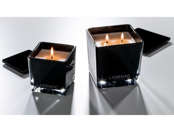 Linija Minimal s sadržajem 100% prirodnih voskova, ručno je ulivena u elegantnom staklu, s 100% pamučnim fitiljem i s crnim poklopcem od sintetičke smole.