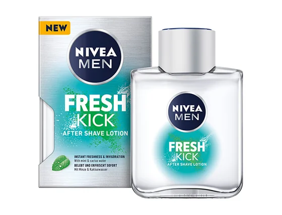 Dobivate li ospice samo kad pomislite na brijač? S pravim losionom poslije brijanja ne morate brinuti o prištićima. Uživajte u osjećaju meke i svježe kože bez iritacija: NIVEA MEN Fresh Kick vodica poslije brijanja. Brand broj 1 u svijetu u njezi poslije brijanja * Čak i muškarci žele imati lijepu kožu. Iskočili prištići, crvenilo i osjećaj svrbeža sigurno vam neće dodati samopouzdanje. Ili se možete kladiti na zarasli imidž žestokog momka ili posegnuti za odgovarajućom kozmetikom za njegu. Vodica poslije brijanja s ekstraktima mente i vodice kaktusa pružit će vašoj koži do 24 sata hidratacije i spriječiti iritacije. Voda kaktusa također pomaže protiv preranog starenja kože. Odaberite svježinu: NIVEA Fresh Kick vodica poslije brijanja. * Izvor: Euromonitor International Limited; pozicija brenda NIVEA u kategoriji losiona poslije brijanja za muškarce, vrijednost prodaje u maloprodaji za 2019.