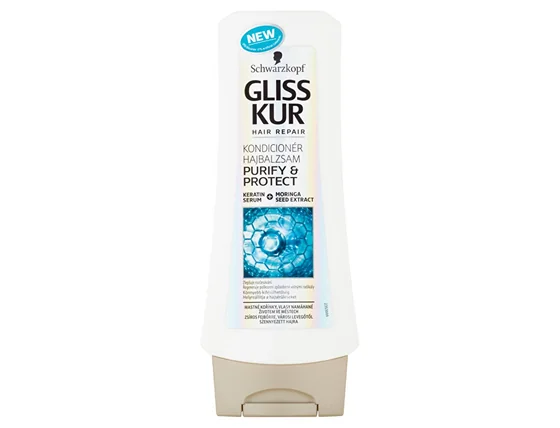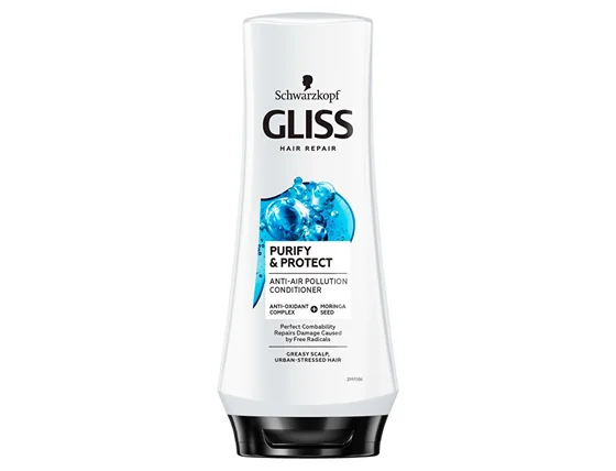 Gliss Kur Purify & Protect regenerator s ekstraktom sjemenki moringe služi potrebama masne kože i kose opterećene gradskim životom. Ovaj ultra-lagani asortiman regenerira oštećenja uzrokovana slobodnim radikalima i štiti kosu od onečišćenog zraka * te poboljšava raščešljavanje. Stvara neopterećujuću svjetlosnu zaštitu od vanjskih negativnih utjecaja. * Protiv prašine, koristiti u kombinaciji sa šamponom.
