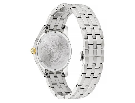 Muški sat Versace VE7C00523 Mens Watch Greca Time GMT 41mm 5ATM dodat će vam eleganciju i upotpuni vaš stil. Uz kvalitetnu izradu iz radionice brenda Versace ne morate se brinuti da ćete pogriješiti.